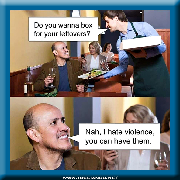 Boxing for leftovers? To get my leftovers, I could kill all the customers in the restaurant, the waiters, the waitresses, the owner and all the cooks. I wouldn’t even spare the dishwashers. Luckily (for them), I have never had any leftovers.