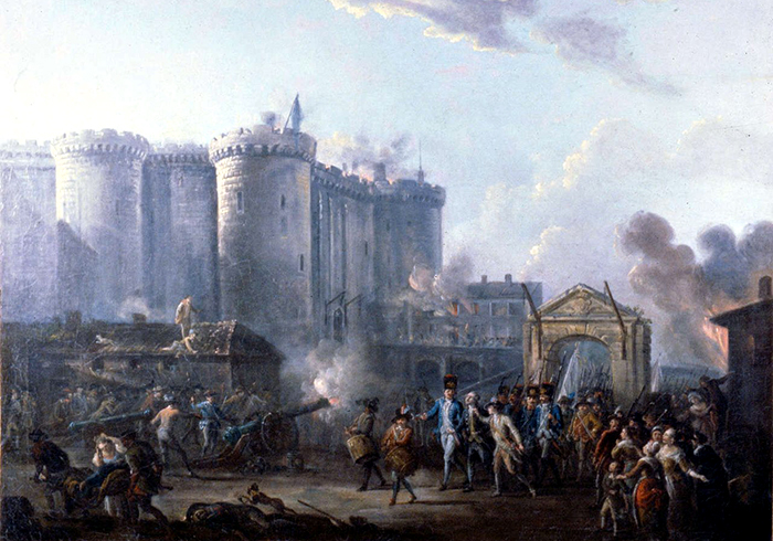 On this day in Paris, France, the medieval armoury, fortress, and political prison known as the Bastille was stormed by revolutionary insurgents. The Bastille represented royal authority in the centre of Paris and was seen by the revolutionaries as a symbol of the monarchy’s abuse of power. After four hours of fighting and 94 deaths, the insurgents managed to enter the Bastille where the governor and several members of the garrison were killed after surrendering. Two days after the storming of the Bastille the British ambassador to France is reported to have said, “Thus, my Lord, the greatest revolution ….. has been effected with, comparatively speaking, ….. the loss of very few lives. From this moment we may consider France as a free country, the King a very limited monarch, and the nobility as reduced to a level with the rest of the nation.” The fall of the Bastille is seen by many as being the flashpoint of the French Revolution.
